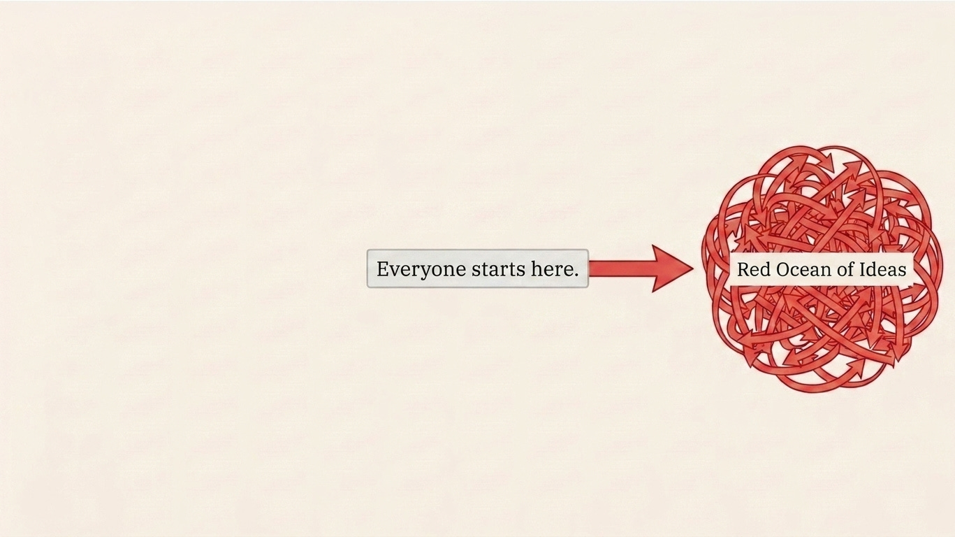 Using AI means you start at the same place as everyone else. That’s why we’ll see all content start to converge. AI means everyone starts in a red ocean of ideas.