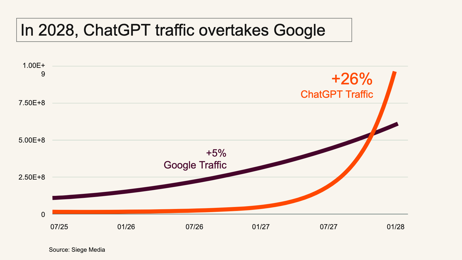 - SEO has been heavily disrupted; the value is moving to AI engines; marketers need a new set of skills so their product/service appears in answers. LLM > SEO in a small number of years.
